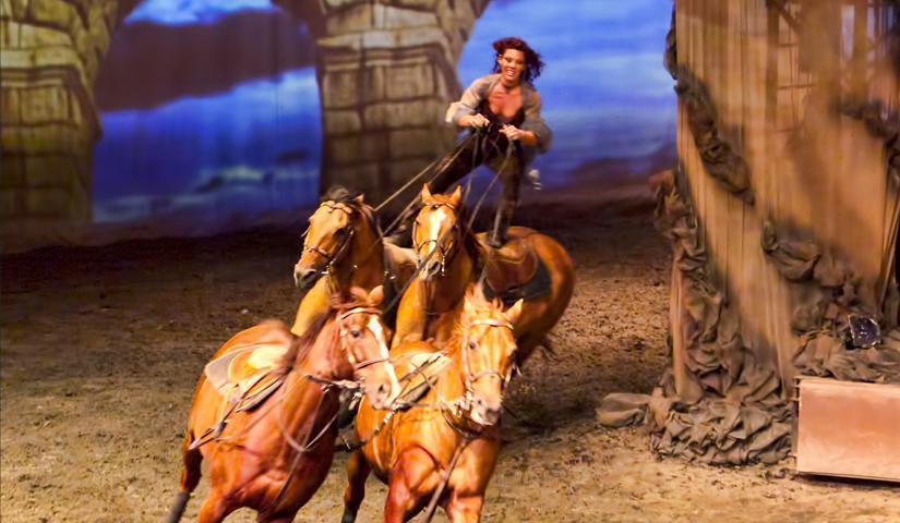 The show is a tribute to the relationship that humans have with horses, an equine fantasy world where irreplaceable bonds push the bounds of freedom. The show reaches highs and lows with stunning acrobatics, surreal trick-riding that features performers on both saddle and bareback, and in some cases, standing on the horses as they fly around the stage. There are also plenty of majestic tricks by the horses themselves, a showcase of the power and grace of these beautiful equine creatures.