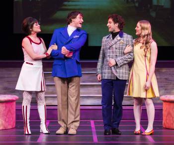 While there may have been a few moments at various times where the action dragged a little, mostly the play moved efficiently. And one of its strengths is its unity, spearheaded by solid musical direction by William Liberatore, Joe Ragey’s ingenious set, and the eye candy of Fumiko Bielefeldt’s Twiggy-like period costumes.