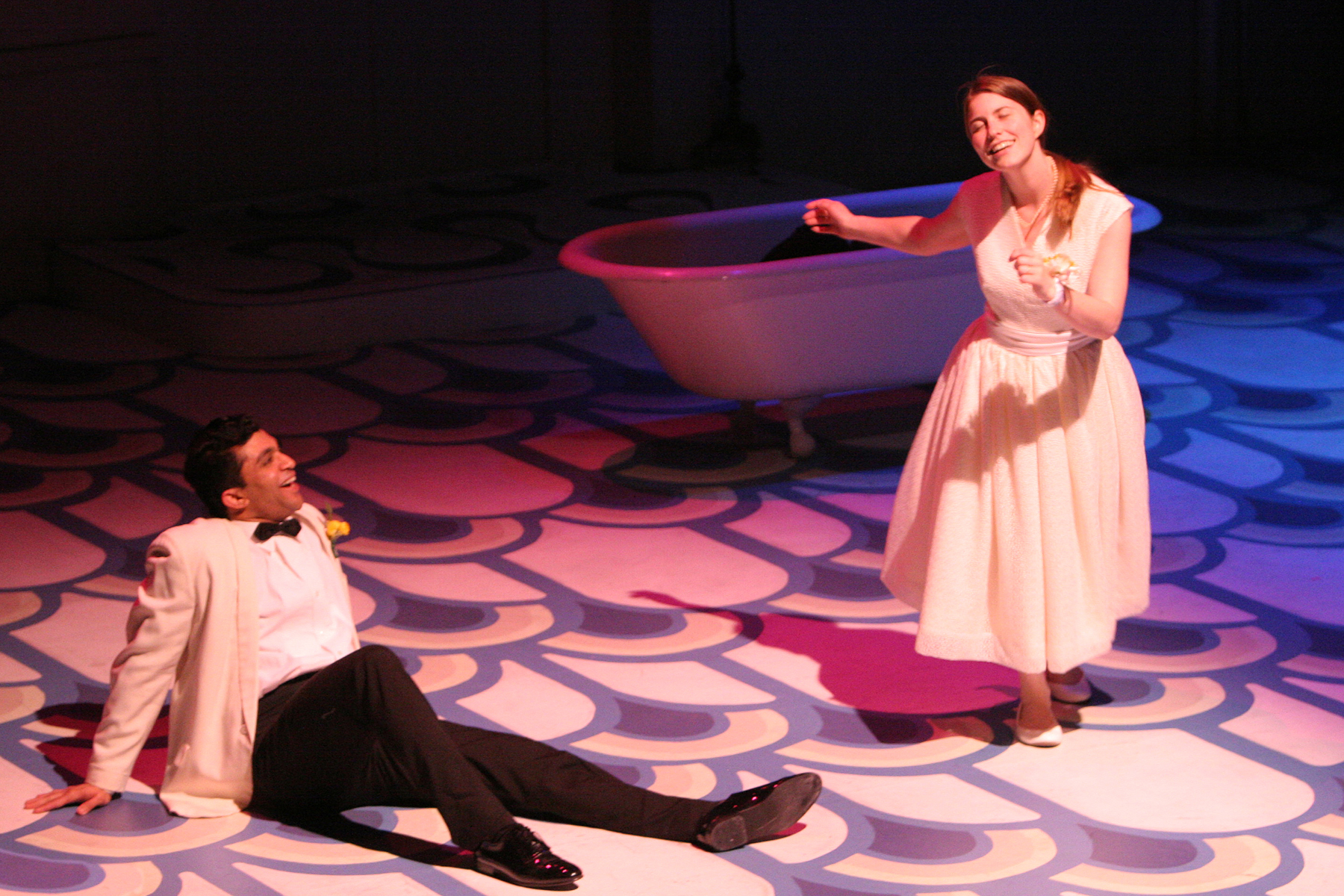 The play is an adaptation of the Ancient Greek myth of the oak nymph Euridice. Ruhl’s play is a relatively honest adaptation of the story, traveled to our literature from Greek writers Ovid and Virgil. The story follows the musician Orpheus (Aby George), as he travels to the underworld to bring back his new beloved bride Eurydice (a gentle Alisha Ehrlich). Eurydice was felled by tragedy on her wedding day, and if she is to survive the return, Orpheus must walk in front of her and not look back at her until they reach the surface. But tragedy returns a second time when he looks back at her just as they are about to reach daylight.