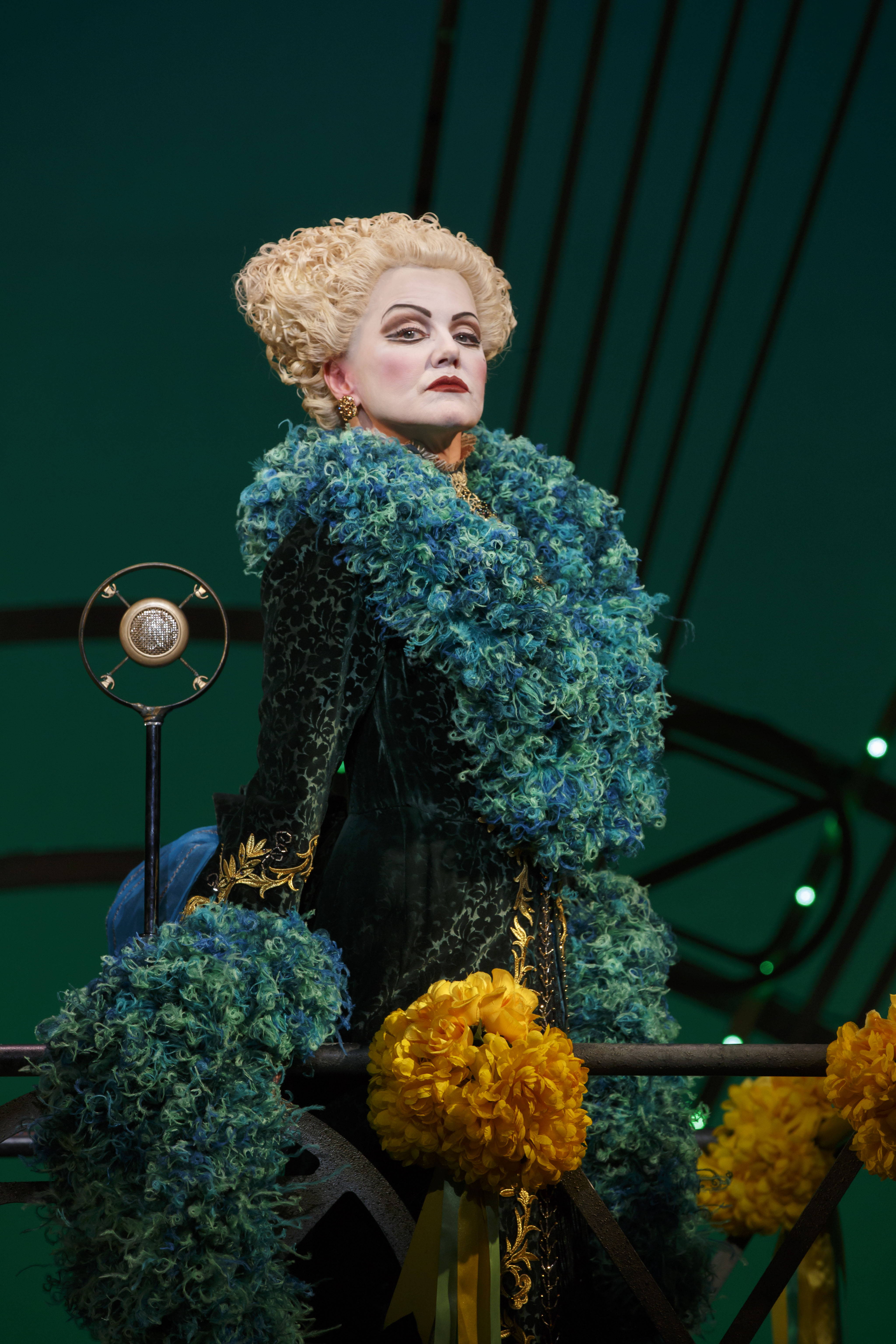 AF: I have played many villains, including the hell-on-wheels diva Veronica Bailey in the award winning web series “It Could Be Worse,” and the Teutonic fanatical hit woman Sister Maria Walburga in Charles Busch’s hit comedy “The Divine Sister.” For me the most intriguing aspect of playing a villain (and I do believe that the only unequivocally villainous character in “Wicked” is Morrible) is to find out the motives for whatever heinous acts she perpetrates in the piece. Villains think of themselves as the hero of their own story. The fun part is discovering what that story is. Why does Morrible lie, spread evil gossip, manipulate, and ultimately kill? Because she wants to be in a position of absolute power in Oz, and feels strongly that she deserves it. She is definitely the second smartest person in the play, and she has hit a glass ceiling in her career in education. It is time to move on to bigger things, and whatever it takes to get them is justified in her mind. I tend to think of her as the Cheney to The Wizard’s Bush, and that, of course, is a very entertaining thing to play.