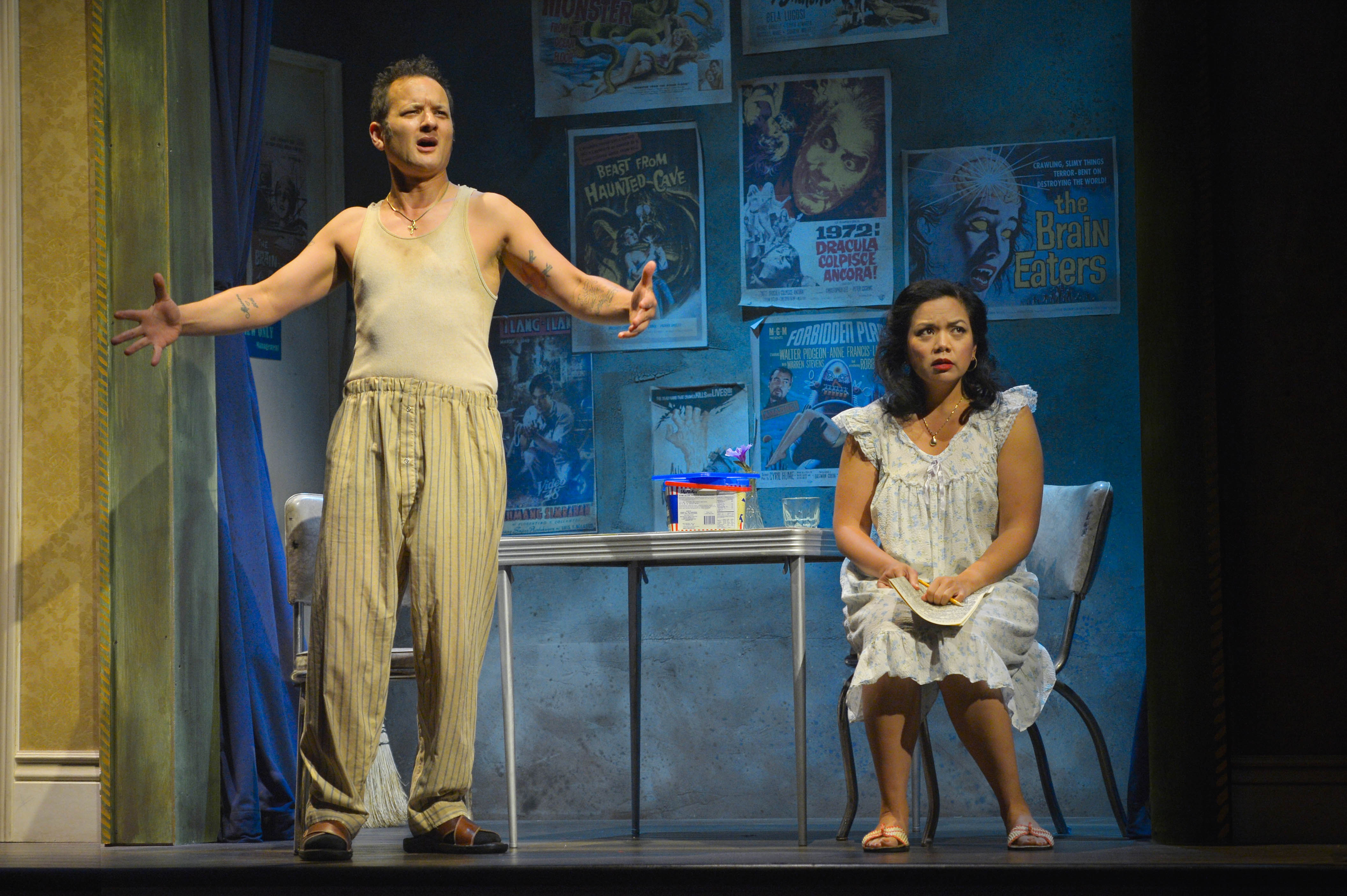 Where both plays connect is really in the harsh reality of dreams. Filipinos in the 1930’s came to the United States for the same reasons that everyone in the history of the United States comes here; For opportunity, for hope, and for a chance to fulfill a dream. The second story of Tenorio’s is about dreams of stardom and Hollywood. Reva Gogo (a wide-ranging performance by Butiu) and her husband, film director Checkers Rosario (a dominant and tender portrayal by Campo Santo’s Sean San Jose, who also wrote this particular adaptation) are no power couple. Gogo is a B movie queen, stuck in her boyfriend’s mostly crappy films. Titles such as “The Squid Mother of Cebu” won’t exactly do much to build anyone a serious career. Yet Gaz Gazman (perfectly smarmy and funny Nick Gabriel) wants a piece of their action, bringing the couple from the Philippines to the film mecca of San Mateo, a city juuuuust a bit north of Hollywood, where Gazman’s Russian mother is not exactly a conventional production assistant. Gazman does not really have much of a pedigree, save for a second place student film award and a really deep basement, great for creating science fiction scenes where aliens probably come out of the ground.
