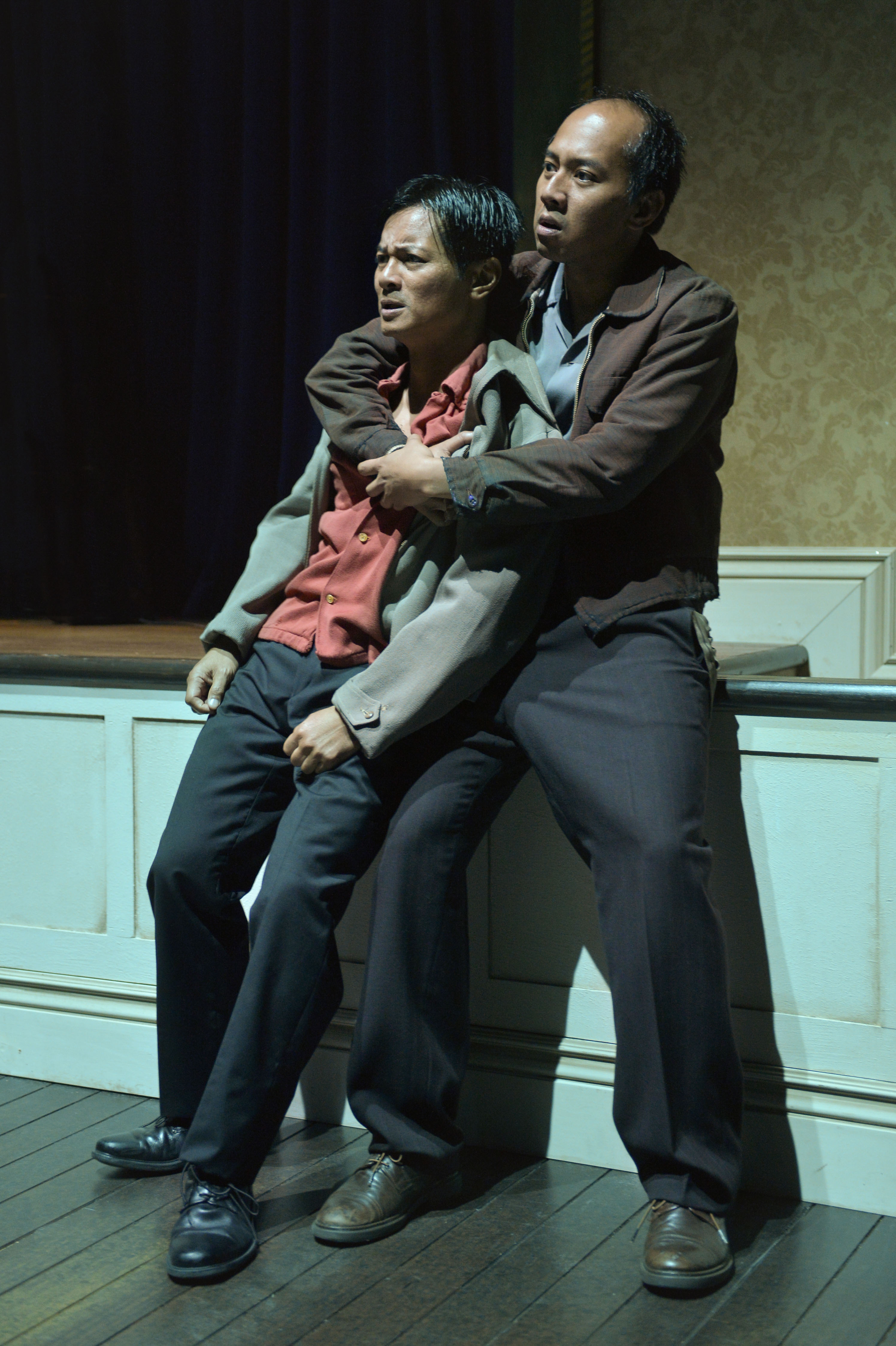 The storytelling device was greatly assisted by the return of Tagatac, Zulueta and Rinabeth Apostol, who function as a Greek chorus of three, pushing plot and story forward in the funniest and cattiest of ways. Lydia Tanji’s brilliant period costumes, wonderful soundscape by Jake Rodriguez and some solid lighting from Robert Hand inform all of the play’s characters.