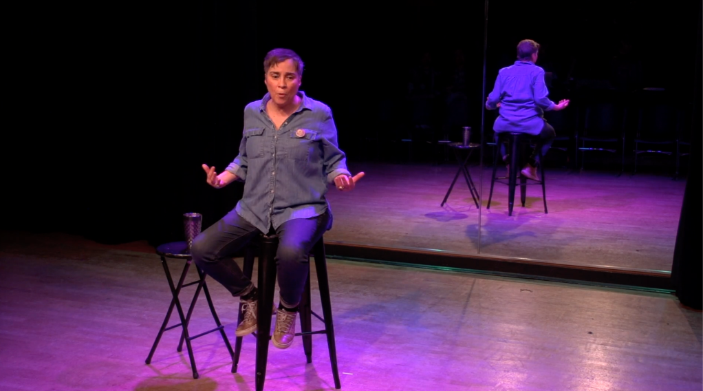 The heartbeat of the piece is in her portrayal of Scotty, a boy who she first sloppy kissed, which Gomez claims to have made both of them gay forever. Scotty, in the hands of Gomez, is a wholly sympathetic figure that is further complicated by Gomez’ depth-filled portrayal. It is painful and uncomfortable to see Scotty try to work the room in a restaurant, a man grasping for clout that may be viewed as cartoonish. She puts in the work, really grasping the nuances of the Zoom venue, getting up close and personal and making the experience a really intricate dance between performer and technology. Gomez does much to shorten the gap that exists when one consumes media through a device.