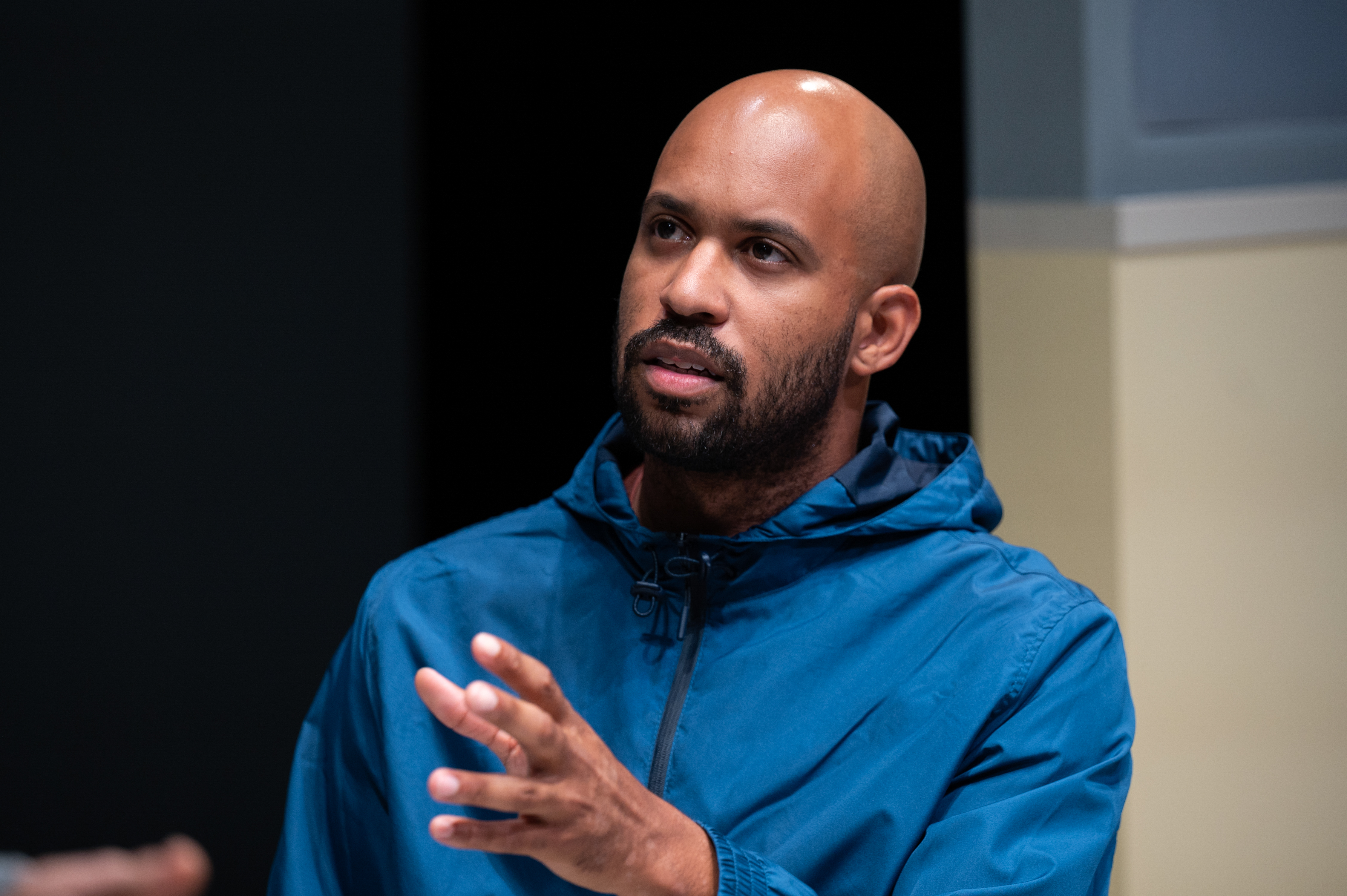 Each performer plays clear intentions. Santos portrays the advocate we need him to be, while Rao is sharp as she guards strongly against getting swept up in another asylum-seeker story. And Scott builds from the inside out, fighting and clinging to any shred of hope as we see his story at the precipice of being filed into one category. Novick’s staging, which allows us to focus on the text, is economically effective. Randy Wong-Westbrooke’s scenic design is powerful by showing no warmth whatsoever. The sly lighting design from Michael Oesch, which keeps the audience illuminated for most of the show, brings forth a terrific, metaphoric end.